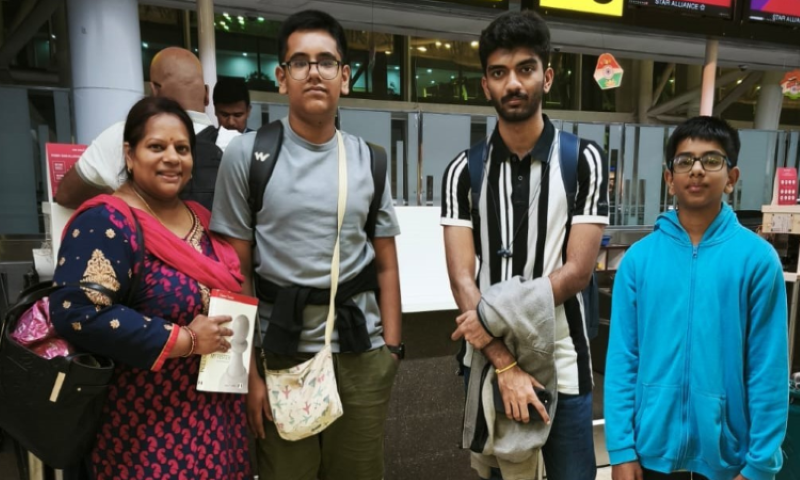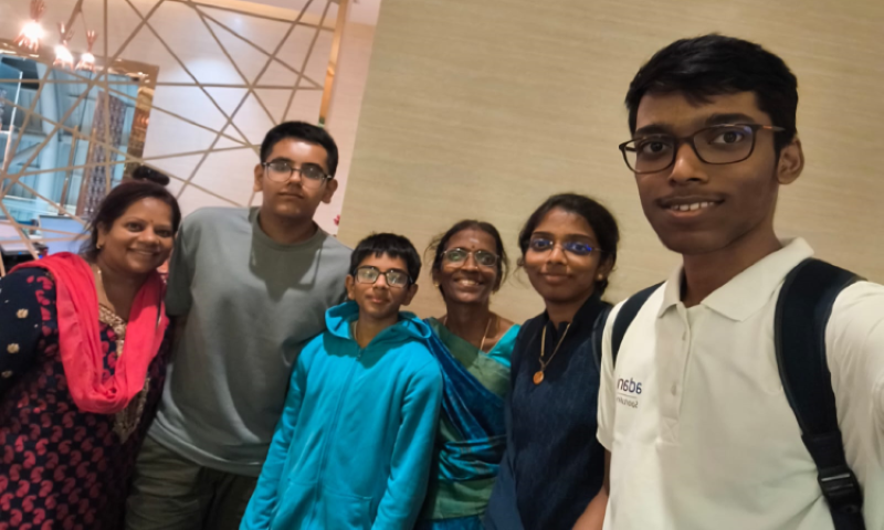 Mohana Vaidyanathan with sons Sathya & Adithya and World Champion Gukesh Dommaraju. The Vaidyanathan Family with Nagalakshmi & Vaishali & Praggnanandhaa Rameshbabu.